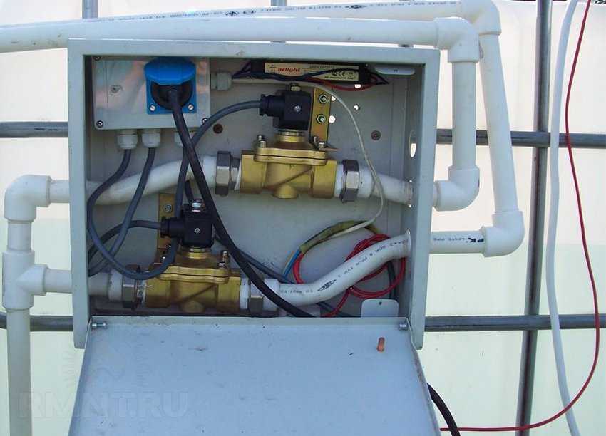 Отличие систем дождевания и туманообразования от капельных в высоком рабочем давлении. Соответственно, потребуется снабдить обвязку насосом в 150–200 Вт и продумать его коммутацию мини-контактором.