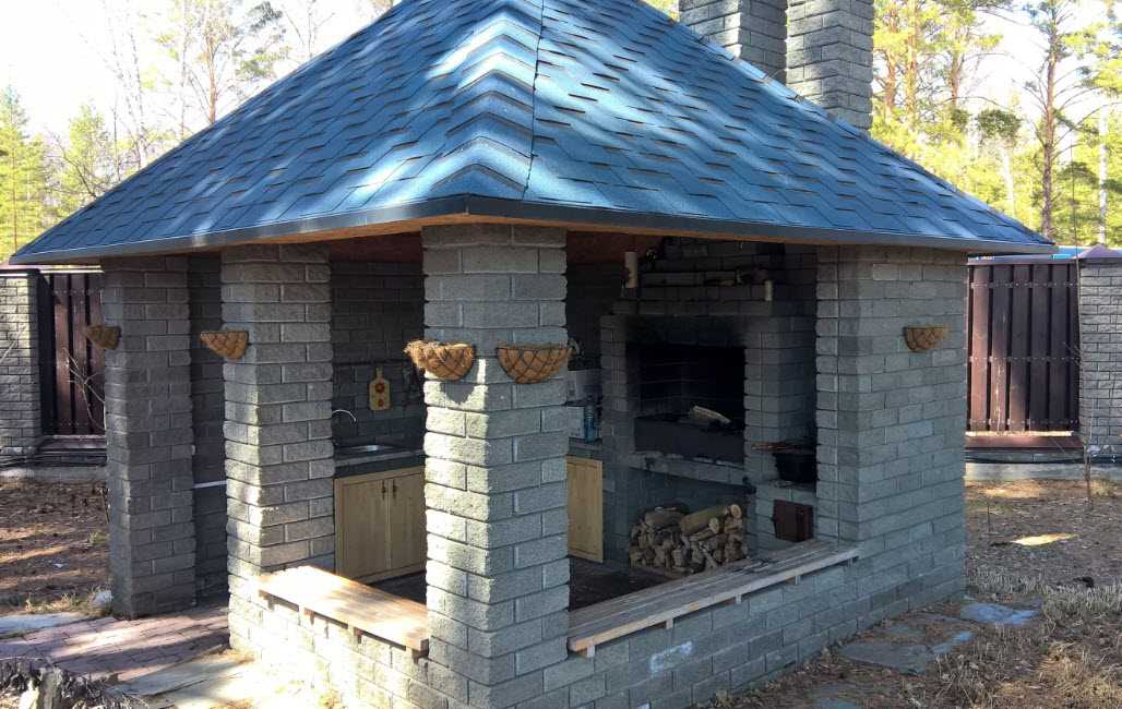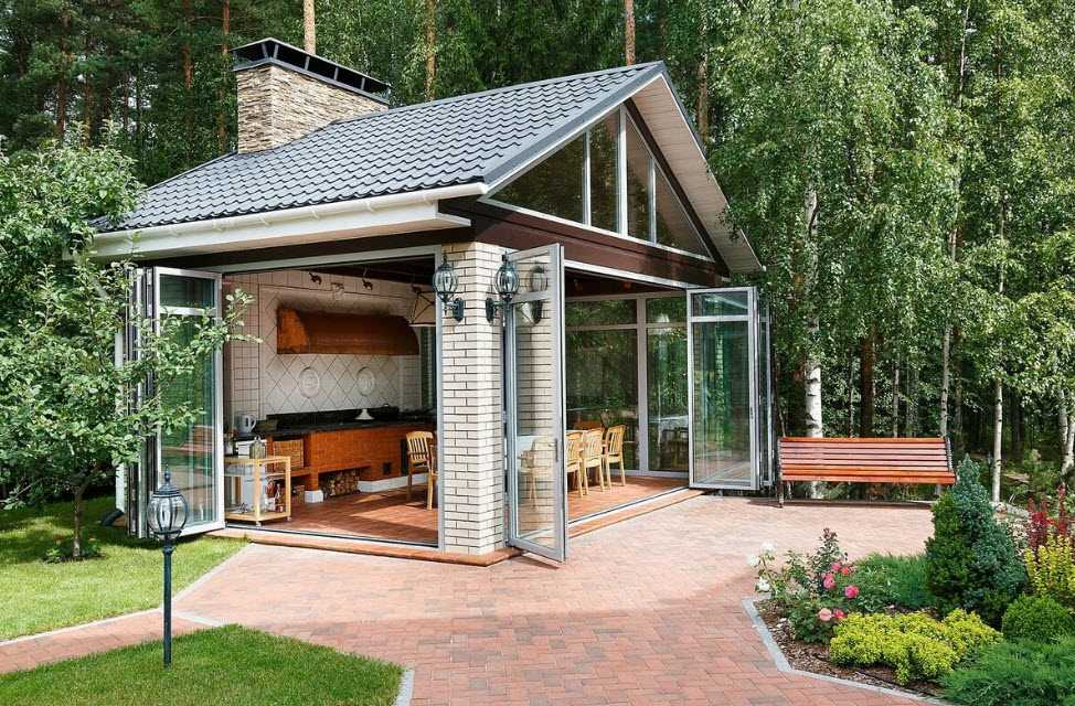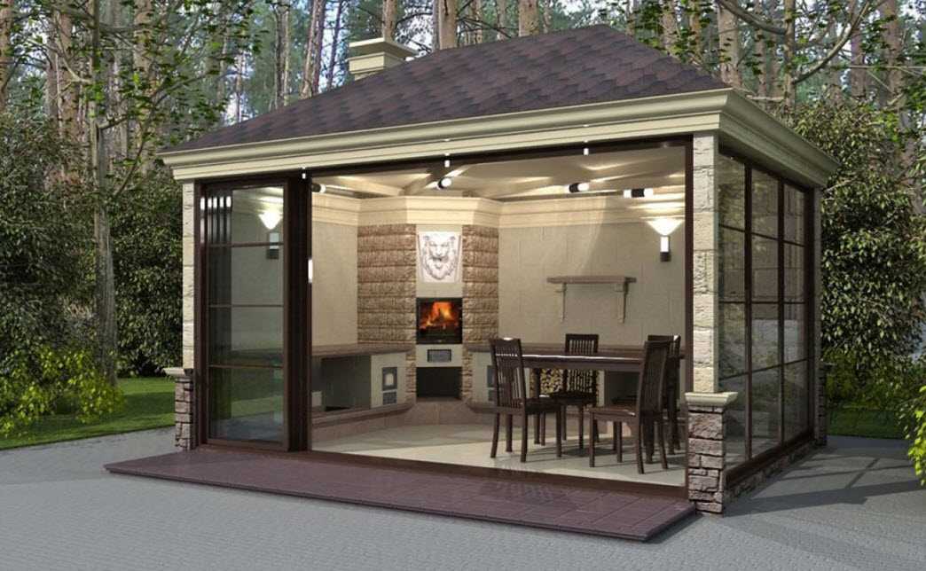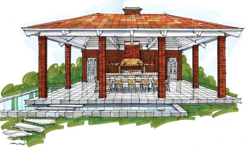 Беседка-летняя кухня с барбекю, мангалом. Проекты, фото, чертежи сооружений