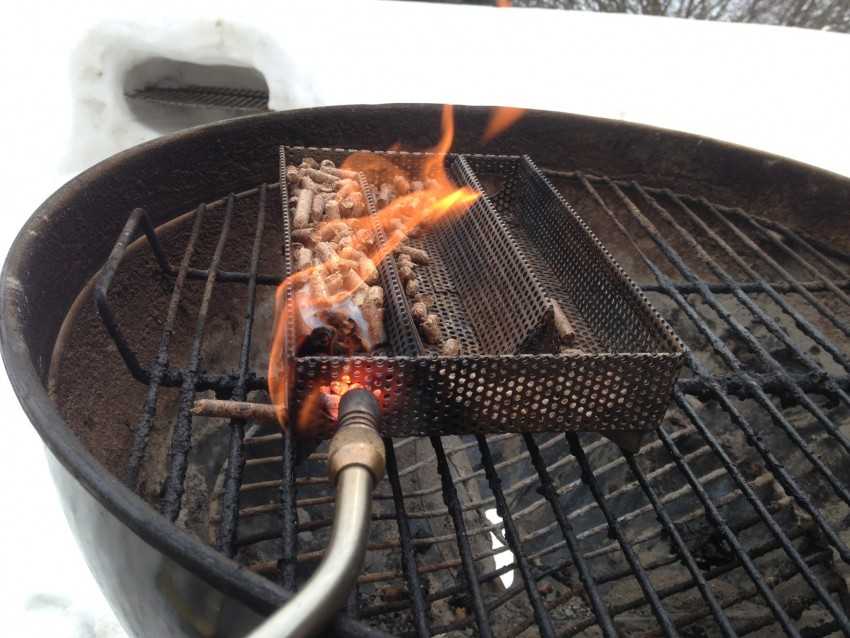 - Теперь остается только время от времени следить за тем, чтобы опилки равномерно тлели и не затухали, чтобы получились вкусные и ароматные копчености домашнего приготовления.