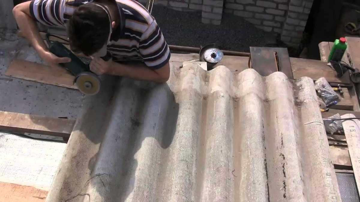 Важно помнить о хрупкости асбестоцемента. Чтобы шифер не треснул, желательно иметь помощника, который будет поддерживать отпиливаемый фрагмент