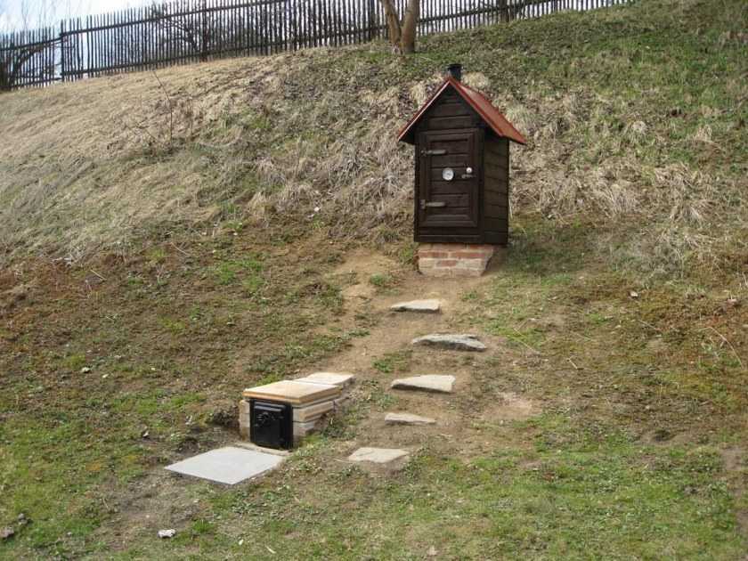 Самая простая конструкция — с дымоходом в земле. Построить коптильню с таким дымоподводящим каналом можно на склоне холма.