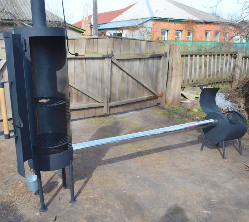 При необходимости ее увеличивают, добавляя отрезки трубы или увеличивая протяженность земляного рва. Более компактные коптильни, собранные на базе дымогенераторов, имеют короткую (около 1 м) соединительную трубу.
