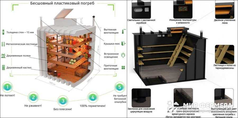 - Пластиковые погреба полностью защищены от влаги и посторонних запахов;