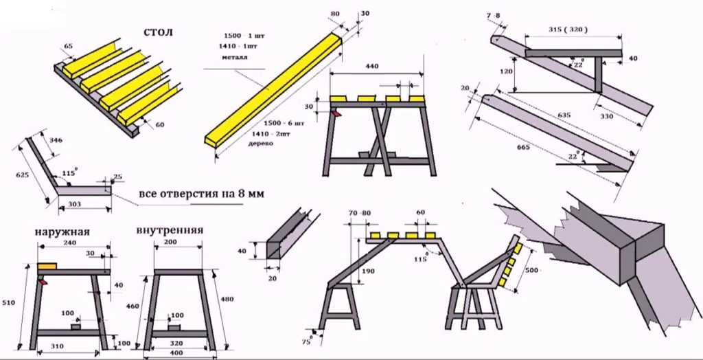 Чертежи, размеры с описанием и схемы сборки лавки-трансформера