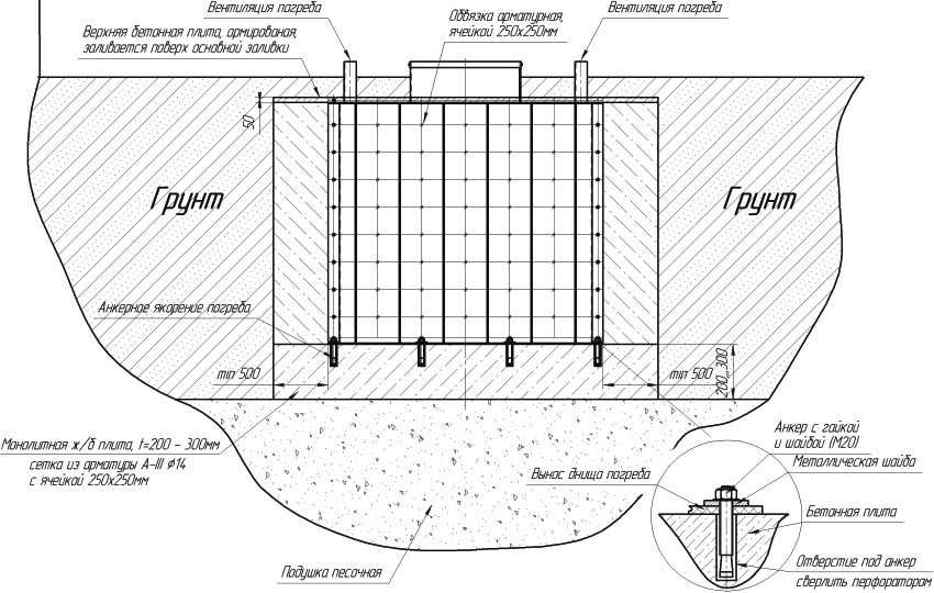Схема монтажа пластикового погреба в грунт вне помещения