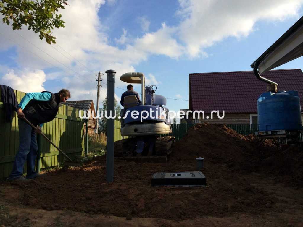 - Монтаж можно произвести не только на открытом участке, но и под любой постройкой (гараж, дом, сарай и т. д.). Конечно, если сооружение уже построено, то установка будет несколько усложнена дополнительными земляными работами.
