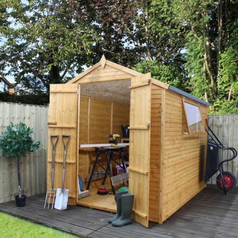 Например, одни считают, что небольшое здание годится только для хранения инвентаря, а также ненужных (до поры до времени) вещей. Те, кто решает создать мастерскую, планирует проводить там много времени, а значит, конструкция должна стать надежным, хоть и временным пристанищем, поэтому удобная мебель для работы и отдыха там необходима.