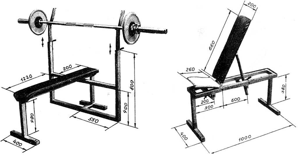 Чертежи можно составить самостоятельно либо найти готовые в открытом доступе. На эскизе должны отображаться все конструктивные особенности будущего изделия, размеры каждого элемента. При необходимости исходные параметры меняют в соответствии с индивидуальными требованиями. Спортсмены, которые ходят в тренажерный зал и занимаются на профессиональном оборудовании, смогут снять мерки и на их основе разработать собственную схему.