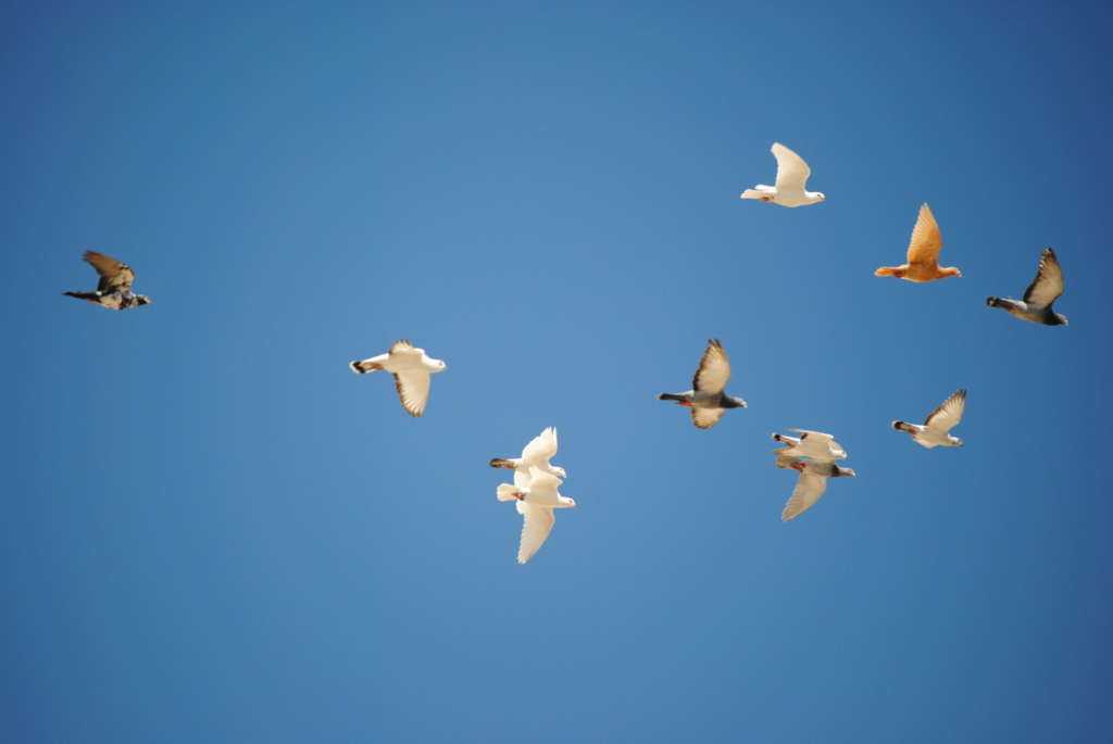 - набрав высоту, голубь немного снижается, чтобы вновь переворачиваясь в воздухе подняться в небо;