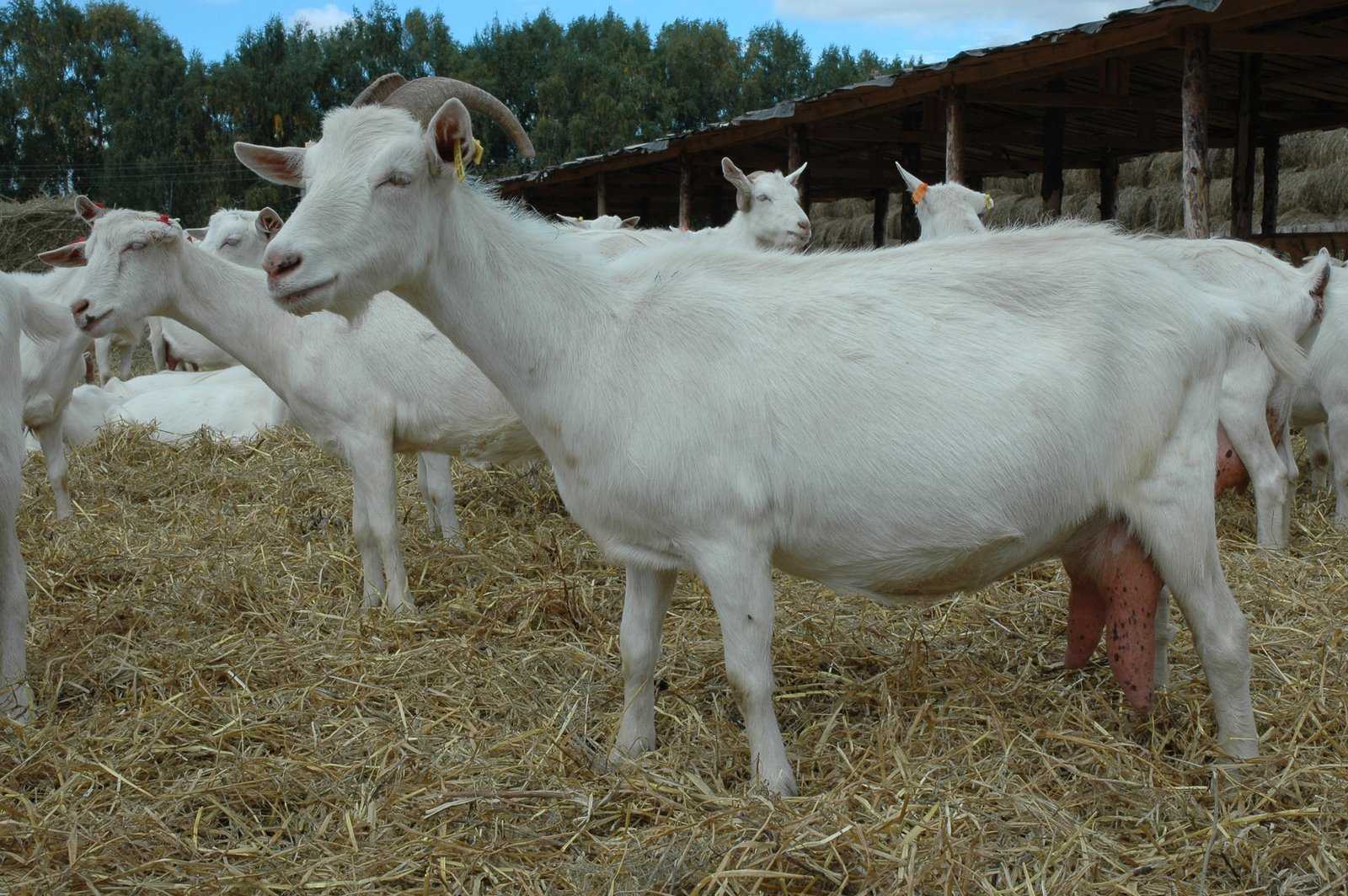 Высокопродуктивная порода постепенно вырождается. Особям присущ конфликтный характер, склонность к заболеваниям. Масса тела – до 30 кг. Рост в холке – 60 см. Короткая шерсть белого цвета. Телосложение мощное, ноги короткие, уши торчат по сторонам. Встречаются представители с бородой и рогами. Годовой надой достигает 800 л, а суточный – 3-5 л. Жирность молока около 5-6%.