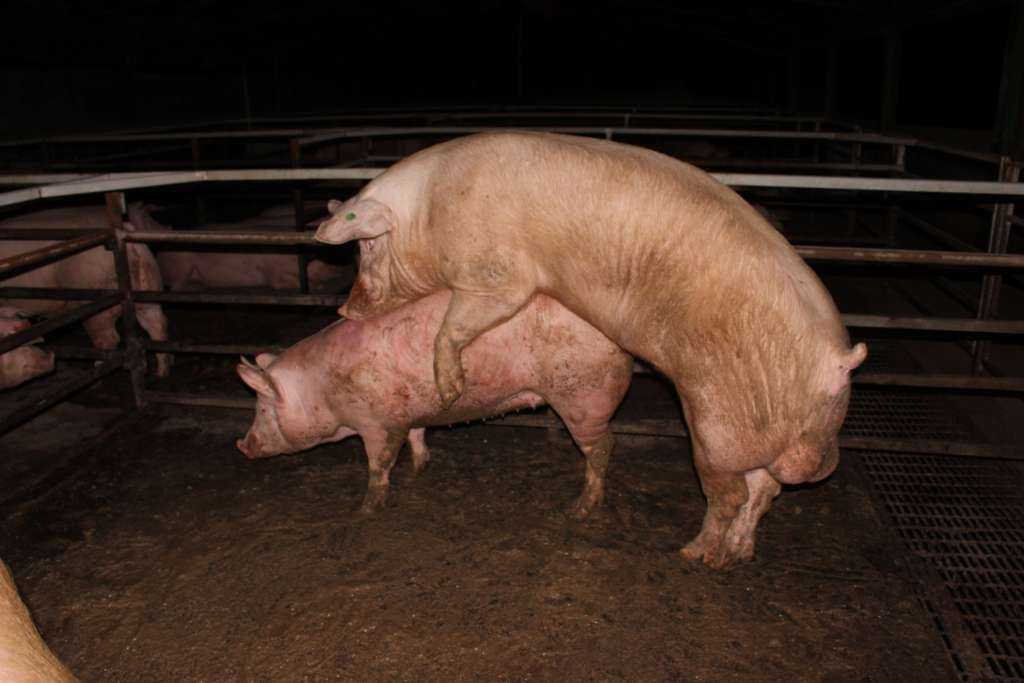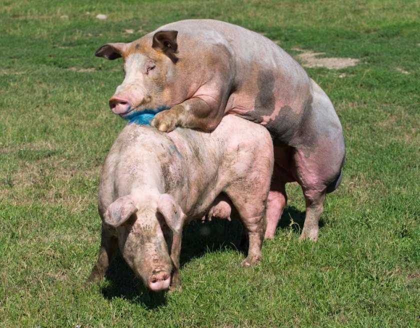 - хряк постоянно пытается запрыгнуть на находящихся поблизости животных и имитирует спаривание.