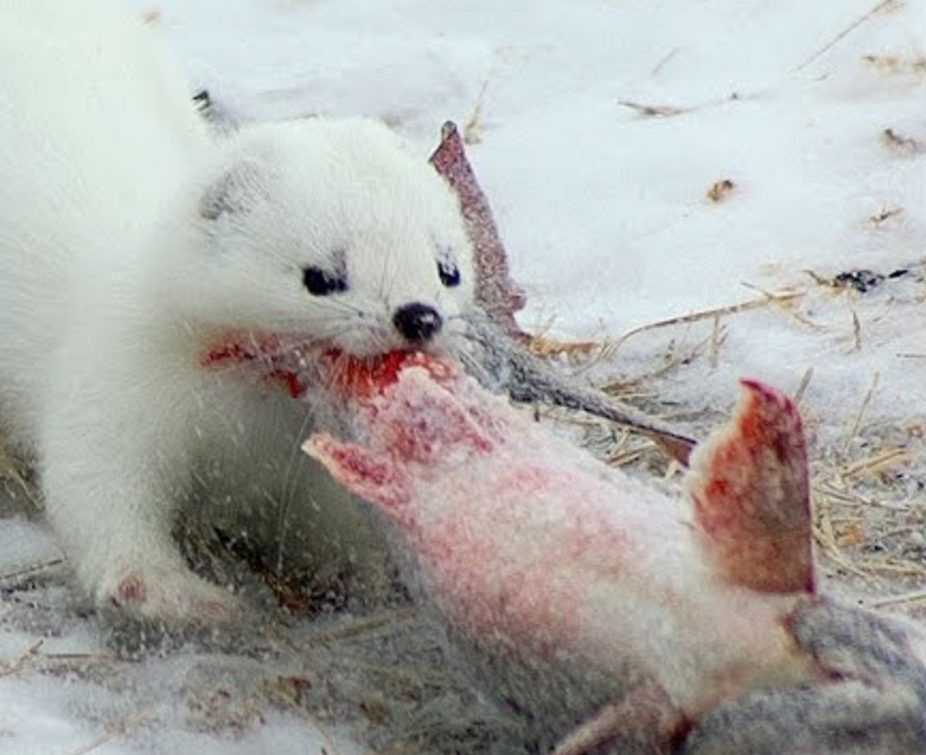 В холодное время года горностай лакомится рыбой