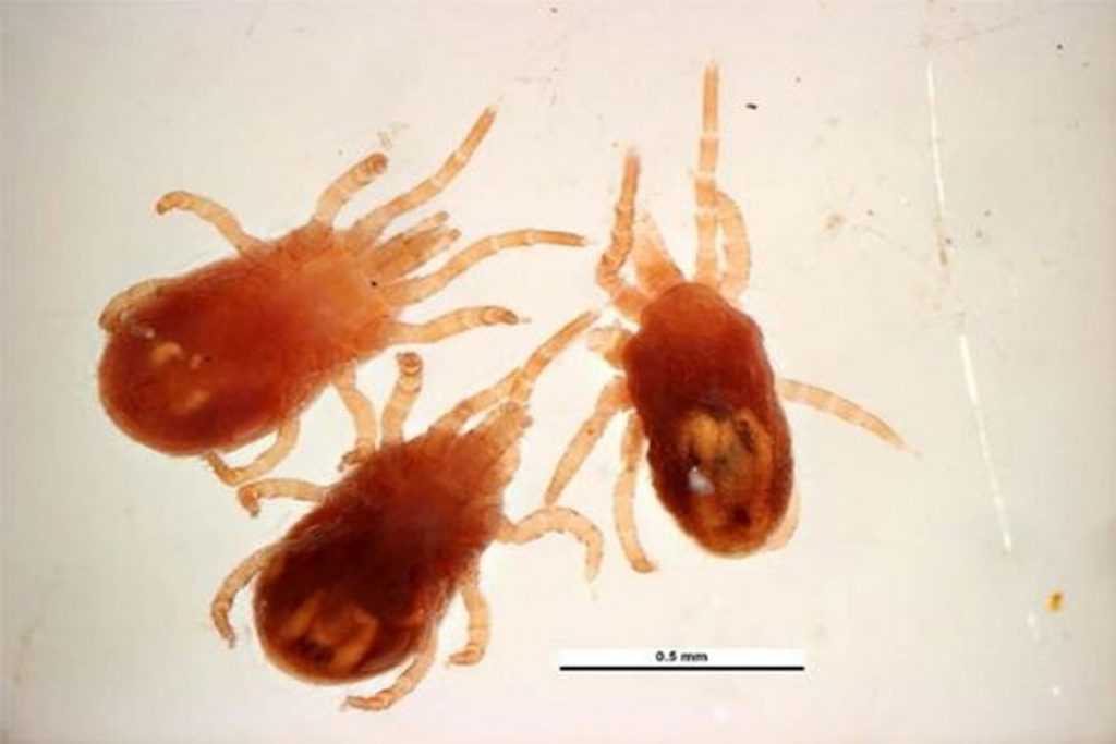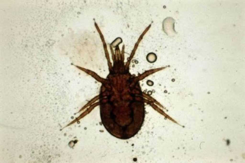 Паразиты могут оставаться незамеченными из-за микроскопических размеров. Так, длина тела взрослой особи – около 0,84 мм, но самцы еще меньше – 0,6 мм. Цвет в спокойном состоянии – красно-коричневый. На спине можно увидеть белые пятна. После приема пищи паразит темнеет. У половозрелой особи 4 пары лап. Они разной длины, расположены в передней части тела.