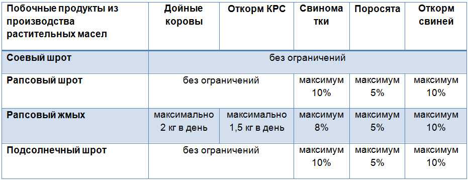 Рекомендации по применению соевого, рапсового и подсолнечного шрота (в общем количестве концентрированного корма)