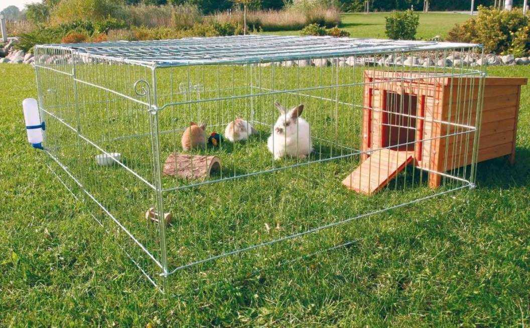 - Вольер. Это самый затратный способ содержания калифорнийцев, поэтому опытные специалисты давно отказались от него. Вольер представляет собой небольшую площадь, огороженную сеткой. Внутри ставятся будочки для каждого зверька. Недостатками является то, что кролики зачастую делают подкопы под сеткой и убегают из вольера. А также постоянно происходили драки между самцами и очень сложно было сохранить целостность шерстяного покрова.