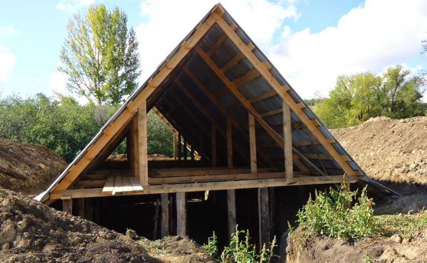 После этого можете выстелить слоем рубероида и засыпать землёй. Над перекрытием можно оборудовать чердачное помещение для вывода вентиляционных труб и хранения инструментов. Саму крышу можно сделать из досок, использовать шифер. Утеплить камышом.