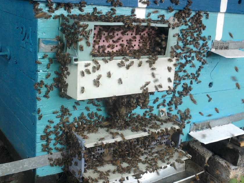 - Кормушка располагается в максимально удобном месте для пчел. При этом заглушки рекомендуется убрать. Место, где находится корм для пчел удобно чистить и, при необходимости, подвергать стерилизации;