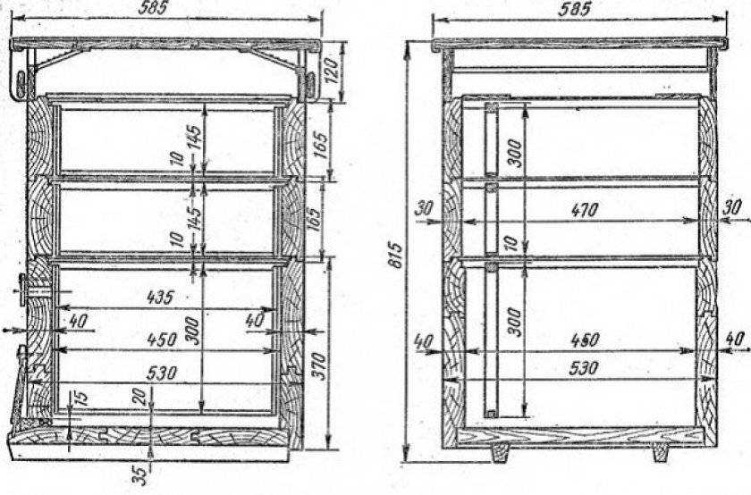 Для рогатых ульев больше подходят рамки размером в 145 мм. Под них удобно корректировать высоту пчелиного домика. Сечение брусков делают размерами 22 на 27 мм. Чтобы детали были надежно зафиксированы между собою.