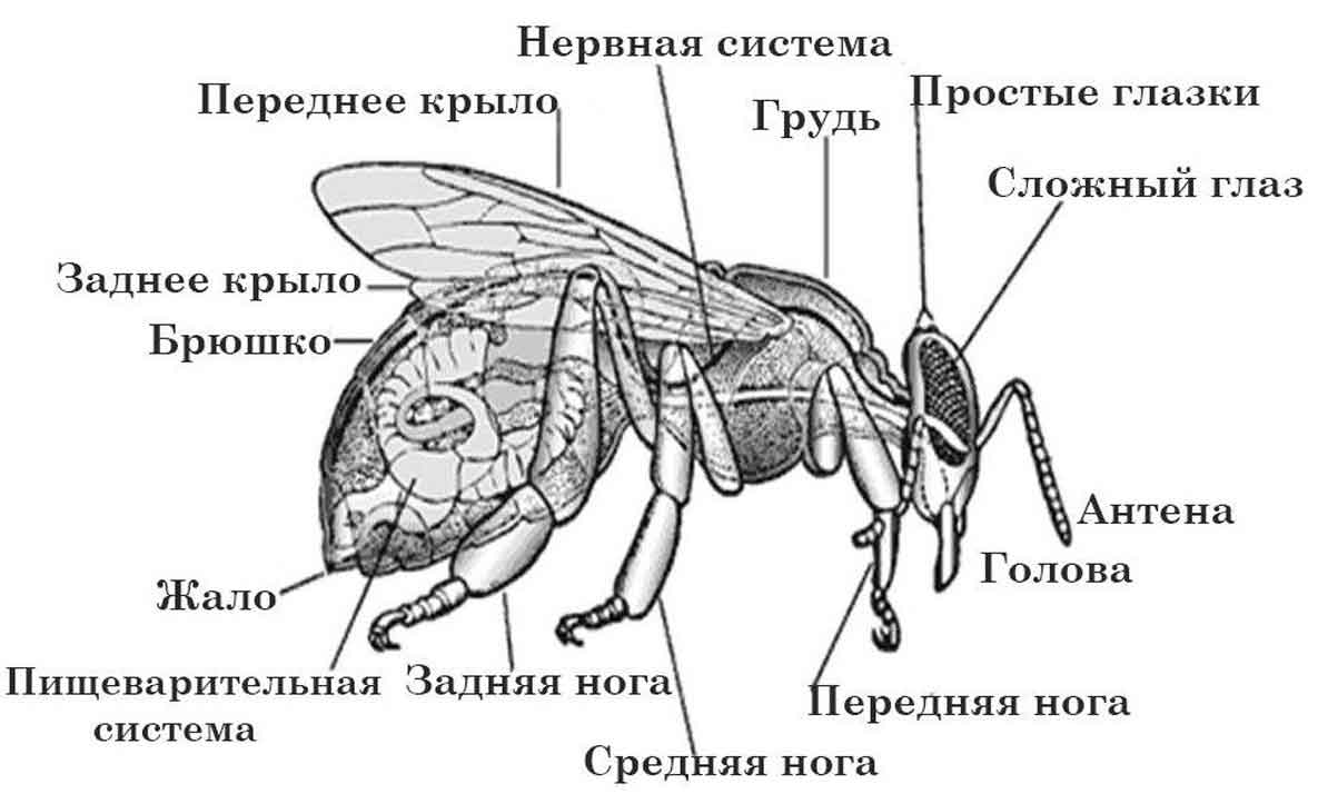 Такое строение тела пчелы обеспечивает возможность летать на большие расстояния в поисках нектара и пыльцы. Летательный аппарат пчелы является живым образованием, по которому движется гемолимфа. Она снабжает крылья кислородом и обеспечивает обмен веществ.