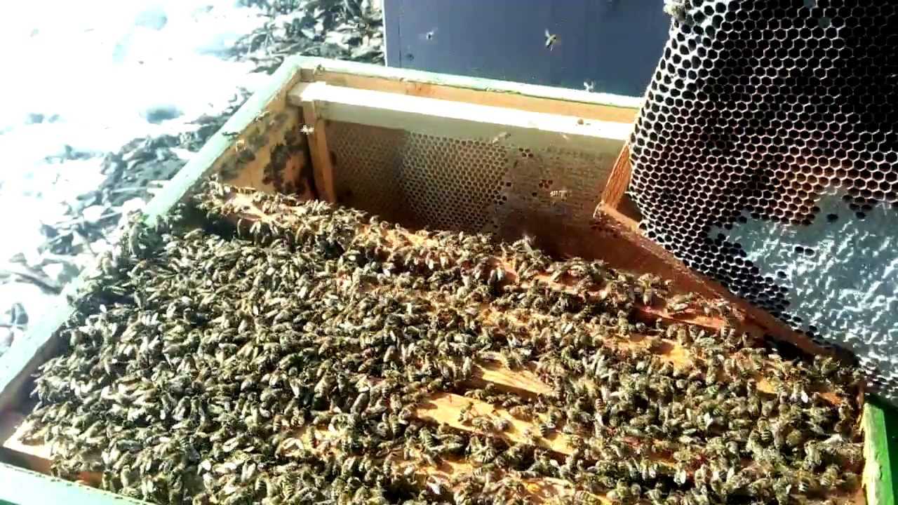 При необходимости переносят соты с медом и пергой, уменьшая их. Все излишки скармливают насекомым. Угощение сахарным сиропом позволит быстрее привыкнуть к новому жилью и укрепить гнездо к концу весны.