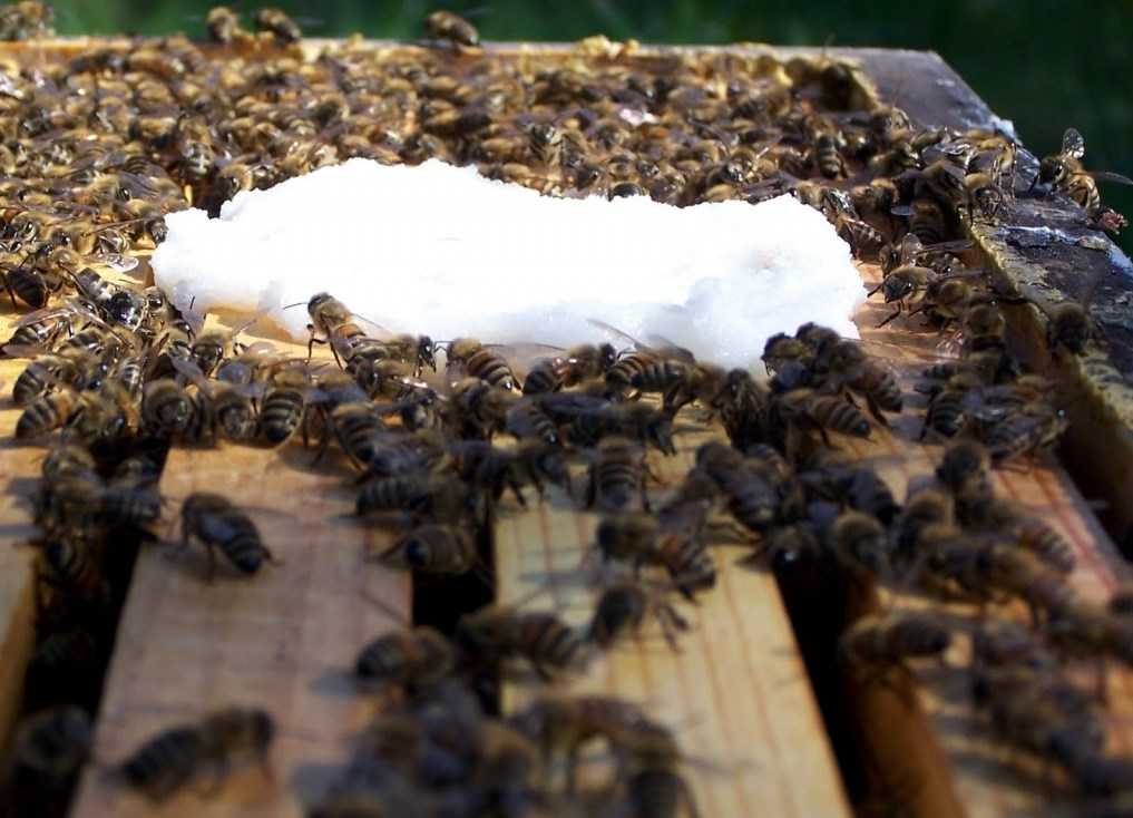 - Пополнить кормовые запасы, если меда нет, соты или кормушки наполняют сахарным сиропом.