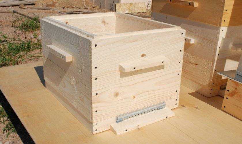 Все части с помощью специального инструмента крепятся под углом 90 градусов. Перед тем как приступить к установке дна и крышки, необходимо выпилить летки нужного размера. Размер летков стандартный: нижний (10х250 мм), верхний (10х100 мм).