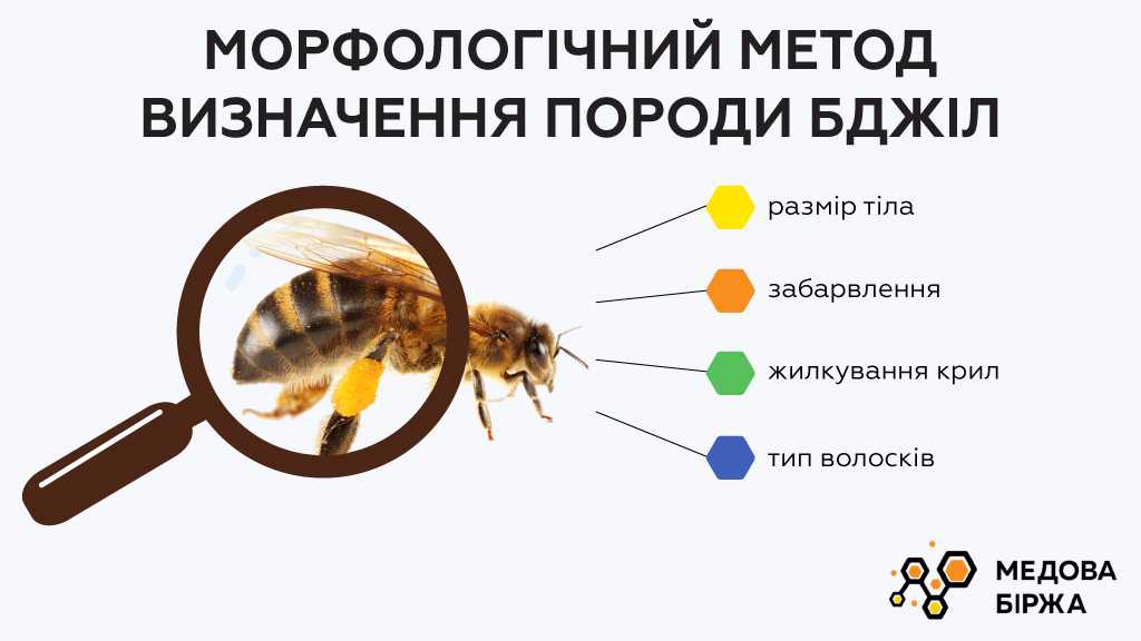 Морфологический метод определения породы пчёл трудоемкий. Чтобы определить породу, исследуют 25 особенностей строения тела пчелы. Внимательно анализируют волоски, хоботок, крылья, заднюю ножку, тергит и стернит. Недостаток метода — зависимость пропорций тела от природно-климатических условий. Такая взаимосвязь смазывает морфометрические показатели разных пород. Однако, морфологический анализ породы популярен у пчеловодов.