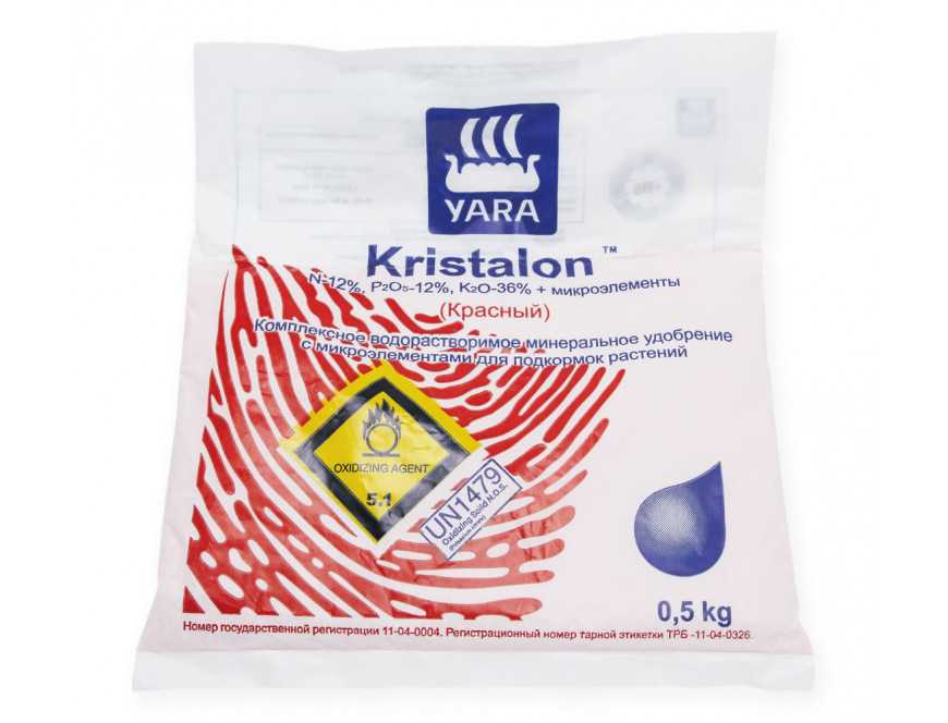 Кристалон «Красный» отличается повышенным содержанием калия. Используется на почвах бедных этим элементом, а также служит защитным средством от болезней. Удобрение помогает растениям справиться с кратковременной засухой.