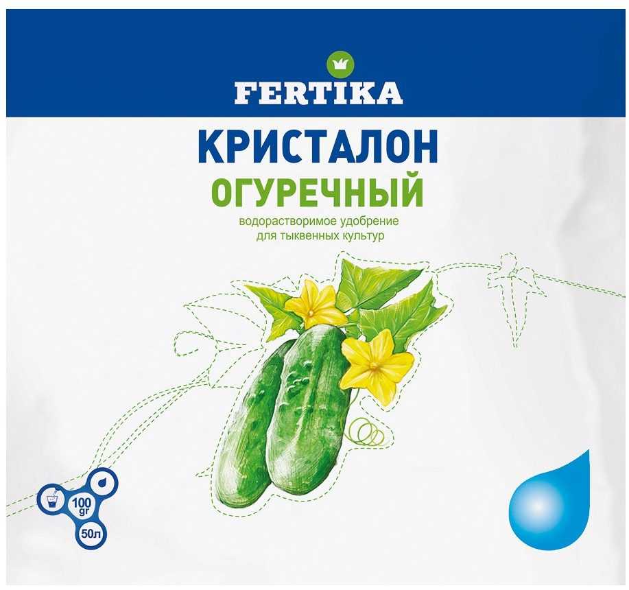 Огуречный Кристалон, в отличие от Универсального или особого, имеет более светлый зеленоватый окрас. Его используют для обработки огурца, тыквы, кабачка, патиссона и других представителей тыквенных растений. Применяется в любых условиях культивирования.
