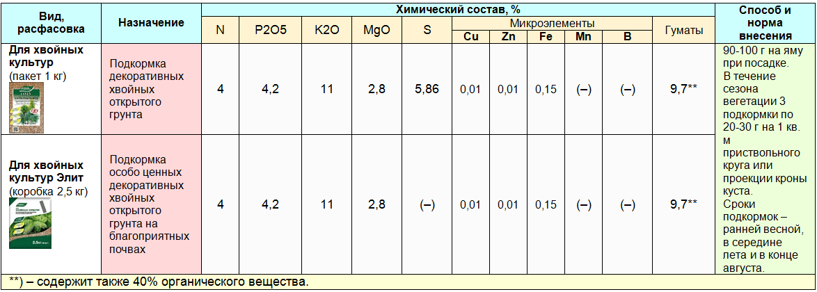 - «Для декоративных кустарников и деревьев» – это препарат, используемый только для декоративных, больших культур. Он делает листву более яркой, цветы приобретают насыщенный окрас, да и цветение длится дольше. При посадке, в посадочную яму добавляется 90-100 г средства, а при подкормке (весной, летом и в конце августа) – 20-30 г/м. кв.