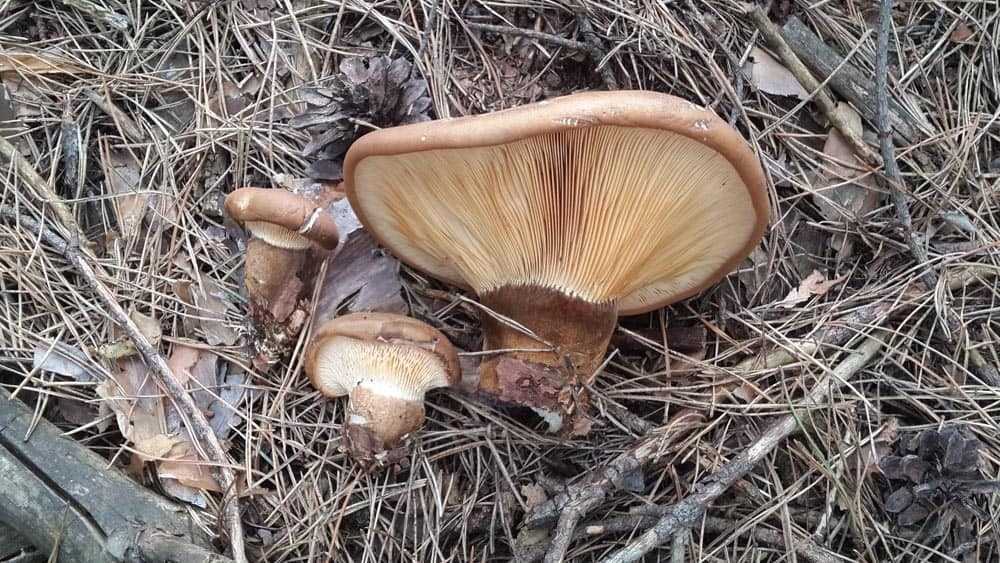 - Спороносный слой находящийся снизу у вида пластинчатый, пластины различной длины. По краешку шляпки короткие сменяются с большими, доходящими до ножки с четкой ровной границей.