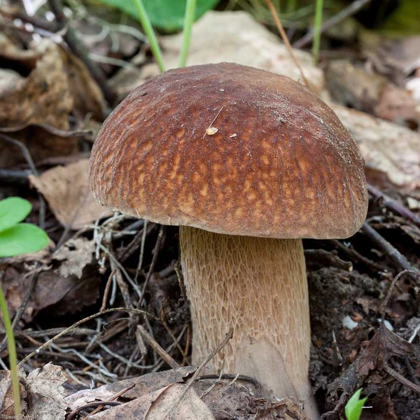 Еловик – самый популярный в России белый гриб, произрастает практически во всех регионах. Для него характерна сравнительно ровная ножка бежевого окраса, с вытянутым рисунком – издали он похож на светлые штрихи. Шляпка умеренного коричневого цвета.