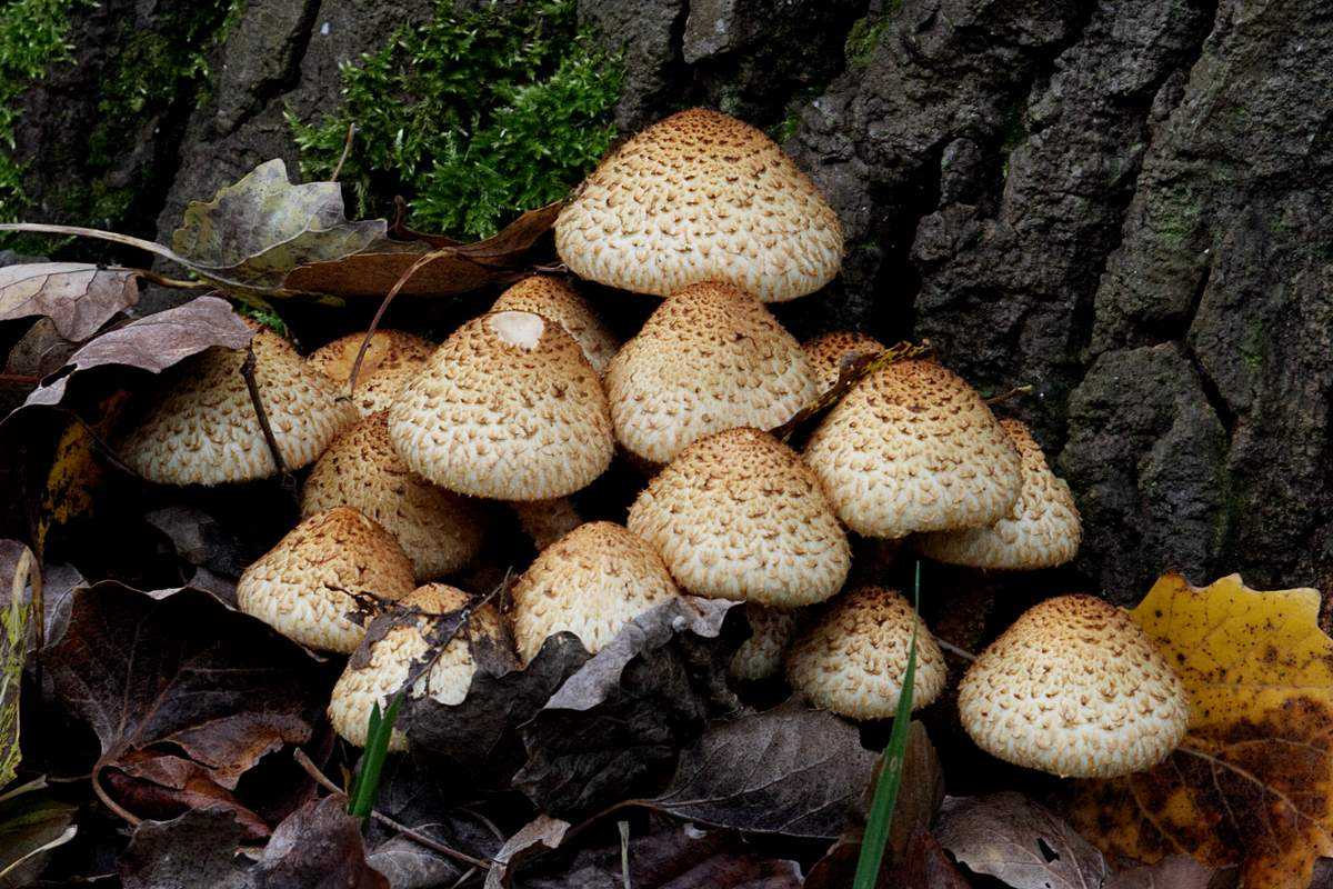 Чешуйчатка ольховая – распространенный гриб в лиственных лесах. Растет сростками, образует плотные семьи, полностью покрывающие участок древесины. Молодые экземпляры желтого цвета. Если мицелий расположен в затененном месте, то по мере взросления гриба окраска становится лимонной, затем приобретает насыщенный оранжевый цвет. На открытом месте плодовое тело бежевое с пятнами охры на шляпке.