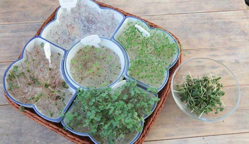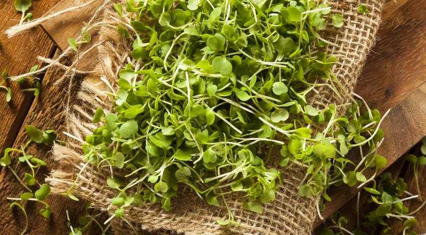 Ничего сложного: это всего лишь очень молодые всходы вполне обыкновенных растений, чаще всего – всевозможной зелени и корнеплодов, реже – злаков. От проростков (которые тоже уже успели побыть «суперфудом») она отличается тем, что растениям дают выпустить семядольные листочки (или первую пару настоящих листьев), в то время как проростки употребляют на стадии прорезывания корешка.