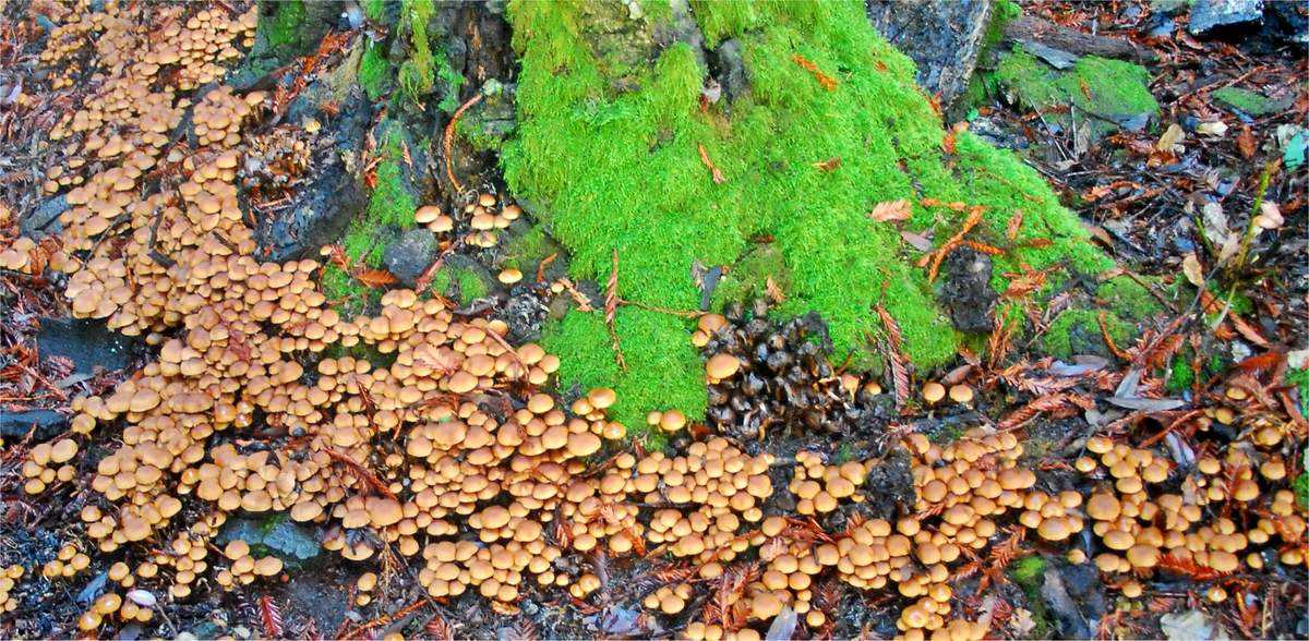 Гимнопил всеобъемлющий часто можно встретить, однако он не очень виден в лесной глуши