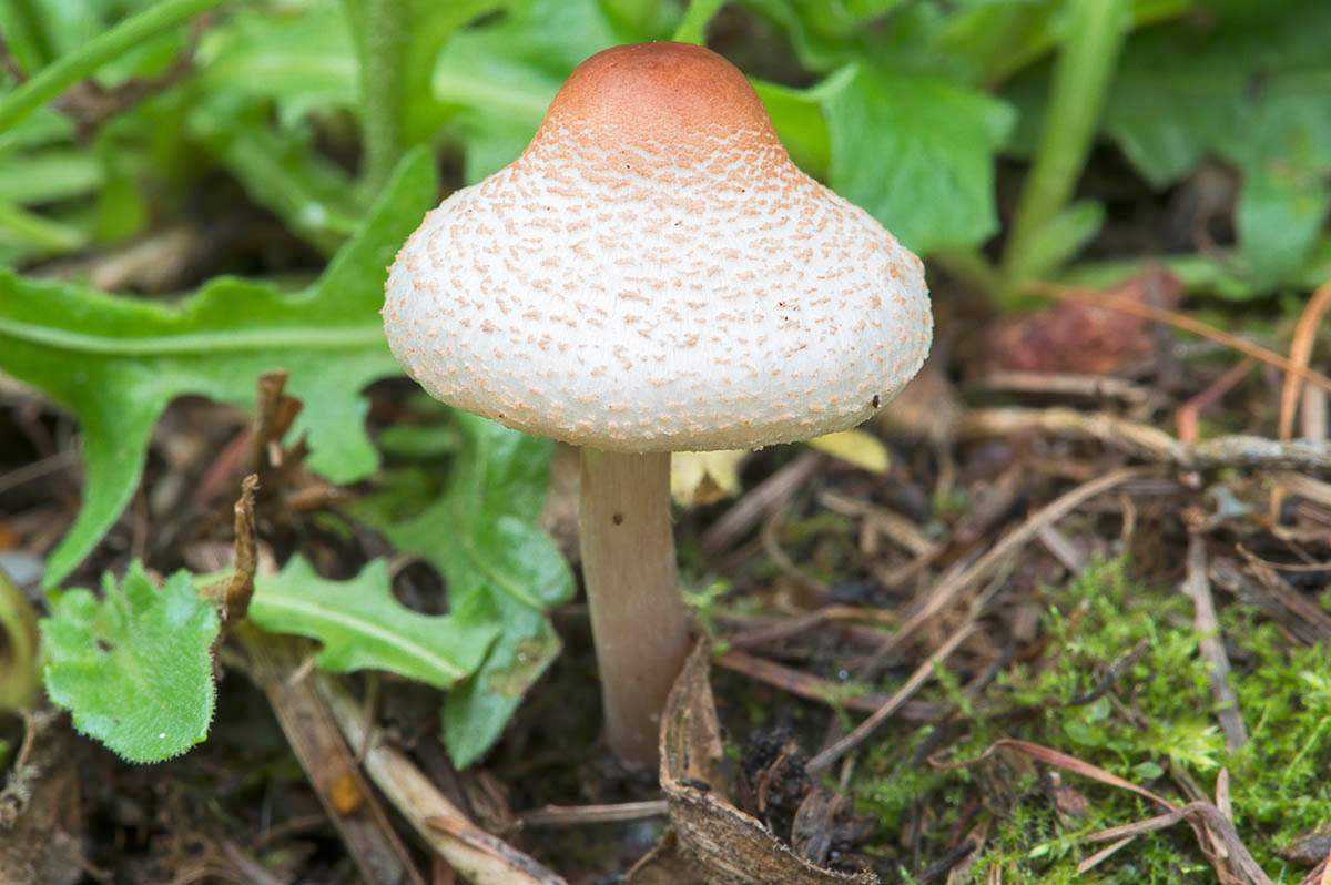 - Шапочка на начальной стадии развития имеет полушаровидную форму, после какого становится выпукло-распростертой с меньшим бугорком, размещенным в центре. Перезревшие грибы выделяются фактически плоской шляпкой. По структуре она мясистая, плотная и довольно толстая. Поверхность украшена очень маленькими чешуйками того же тона, что и сама шляпка. Покрыта краской в оранжевый или охристый цвет, с возрастом преобладают оттенки коричневого цвета. В дождливый период несущественно темнеет.