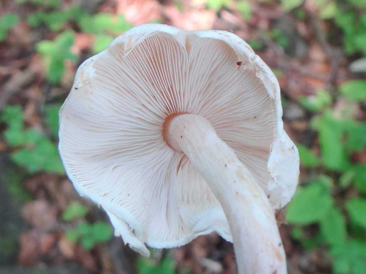 Под шляпкой у этого пластинчатого гриба находятся свободные, часто расположенные пластинки. Споры имеют треугольную форму. Окрас спорового порошка белый.