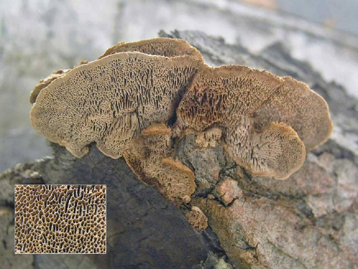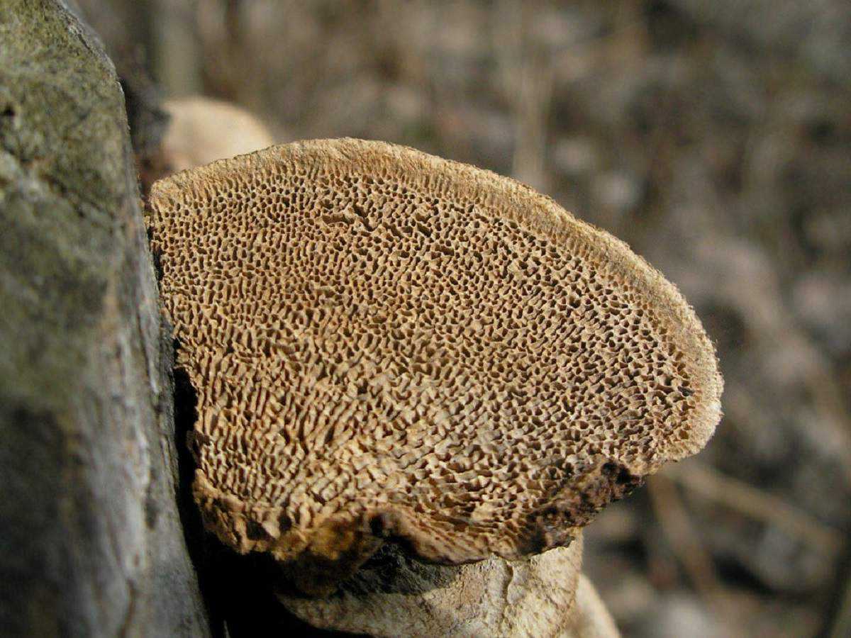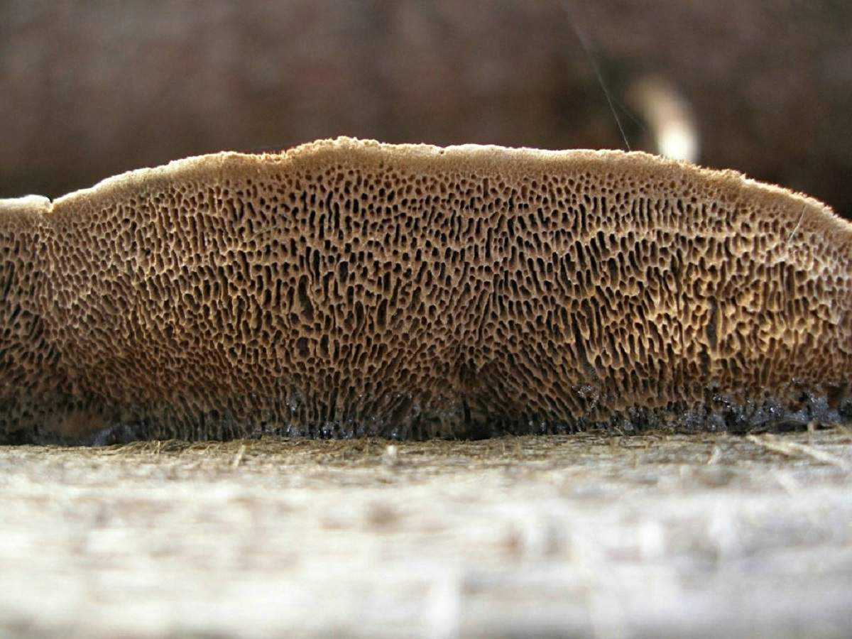 Споровый порошок коричневого цвета находится на многочисленных иголочках на нижней части гриба.