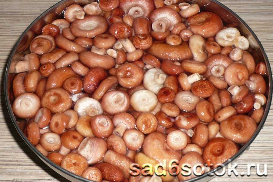 Так как используются уже отваренные грибы, то никакой усадки не предполагается, ёмкость набивается сразу плотно. Единственный недостаток – при горячей засолке волнушки теряют плотность и хрусткость, становясь ломкими и мягкими. Для засолки горячим способом нужны только крепкие и свежие грибочки, желательно небольшие по размеру, без червоточин.