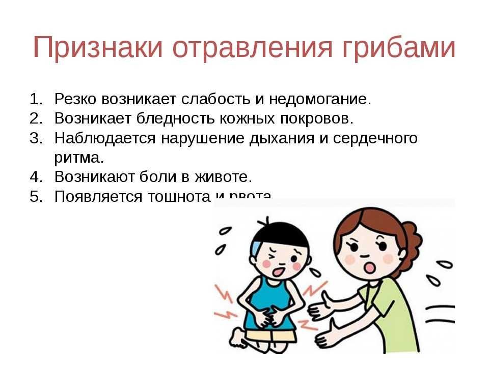 Поэтому крайне важно на емкостях с шампиньонами клеить этикетки со сроками годности. Если после приема в пищу шампиньонов у человека появились признаки отравления (написаны на картинке ниже), то необходимо сразу же вызвать скорую медицинскую помощь