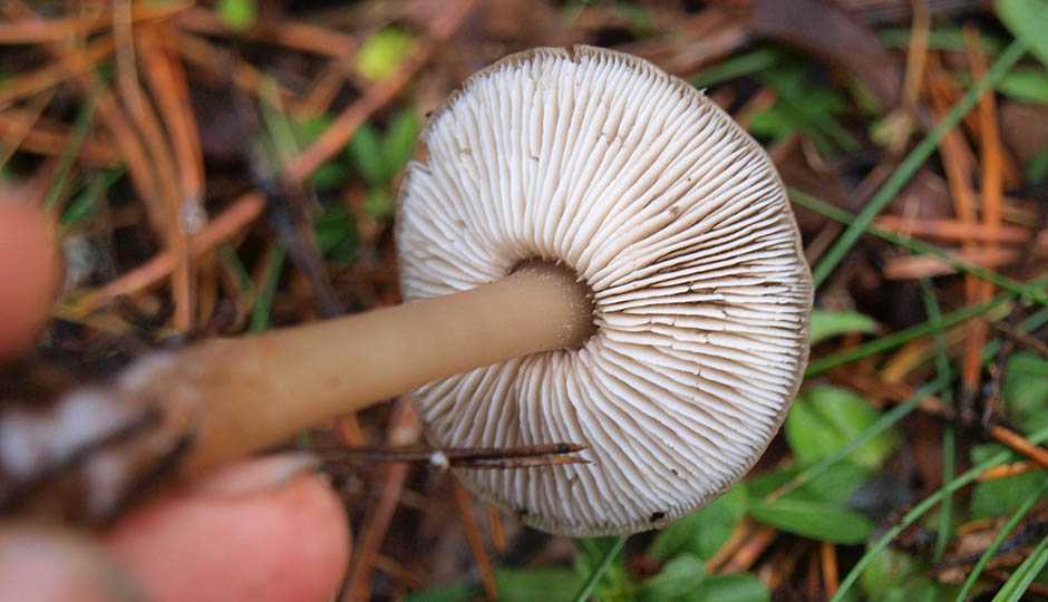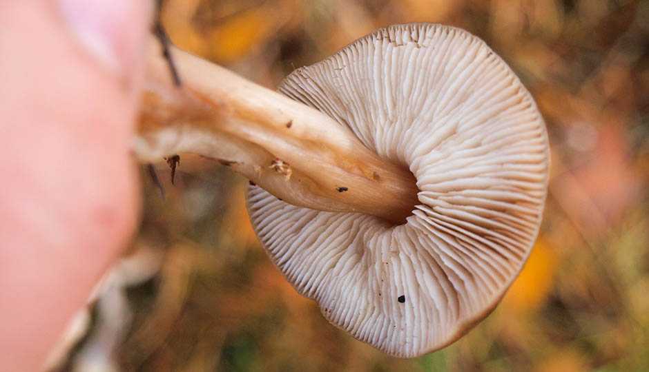25. По цвету ножка гораздо темнее пластинок – как шляпка.