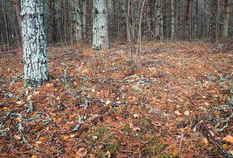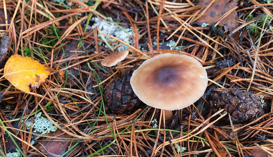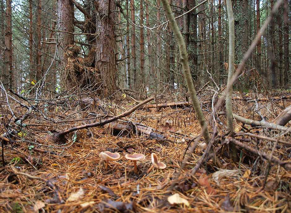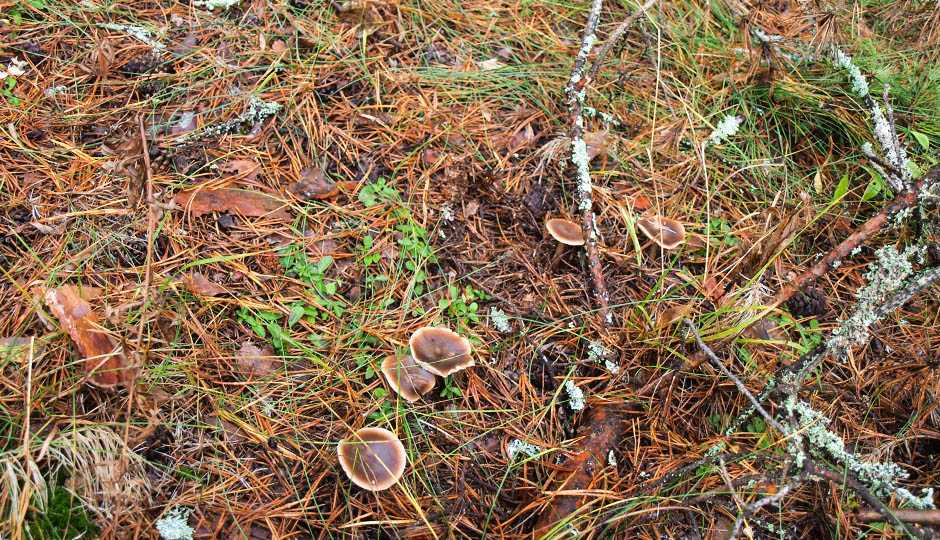 6. Коллибию масляную чаще всего можно встретить в сухом сосновом лесу.