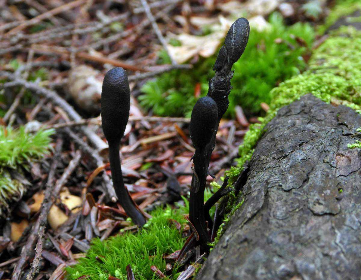 - Разновидность кордицепса серо-пепельного паразитического мицелия. Достигает 3-5 см в росте, не имеет съедобности и полезности для организма человека. Развивается на любых куколках и личинках. Напоминает пальцевидные короткие отростки черного цвета с сероватой шляпкой.