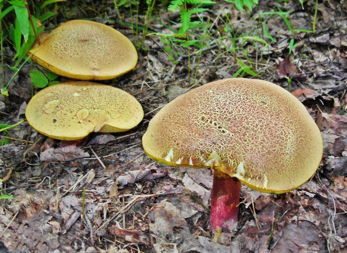 Моховик красный – это ложный боровик, принадлежащий к другому роду. Раньше его включали в болеты. Он встречается редко, растут представители этой разновидности в лиственных лесах, возле старых дорог, просек. Имеет мясистую и волокнистую шляпку в виде подушки. Оттенок кожицы вишневый, пурпурный, розово-красный. Гименофор от золотисто-желтого у молодых экземпляров до оливково-коричневого у стареющих. Ножка желто-коричневая, более светлая сверху, с красноватыми чешуйками. Мякоть желтая, немного синеет на срезе. Собирают этот вид мало не только потому, что при широком расселении (ареале) встречается редко, но и потому, что плодовые тела очень часто поражаются червями, что делает сбор нереальным.
