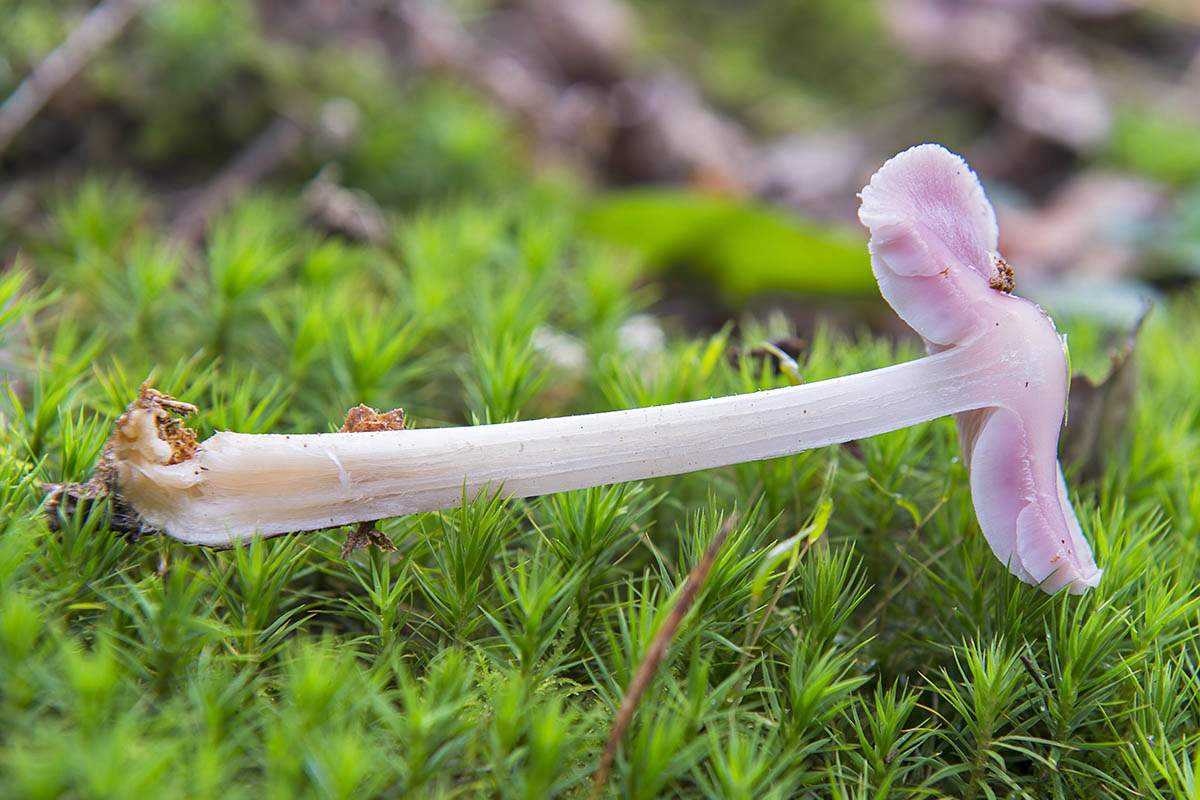 - Ножка. Очень тонкая и длинная. До 9 сантиметров в длину. Толщина составляет всего 1-3 миллиметра. По структуре обтекаемая, гладкая, может быть укрыта мелким ворсом.