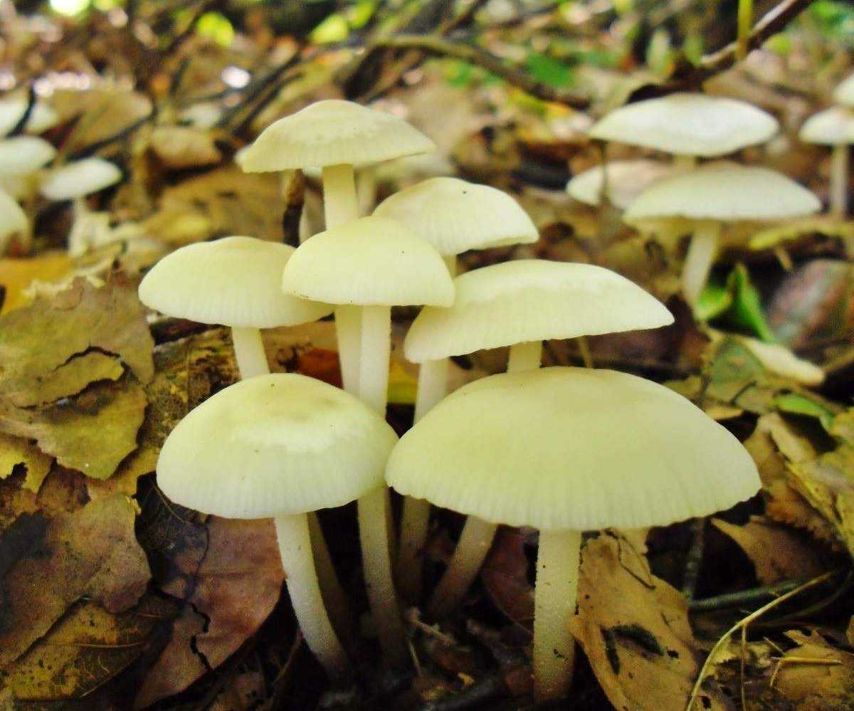Пластинки: пластинки, приросшие к воротничку, обрамляющему ножку, не частые белого цвета.
