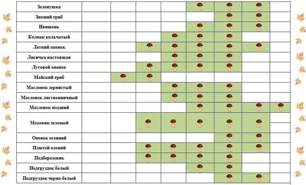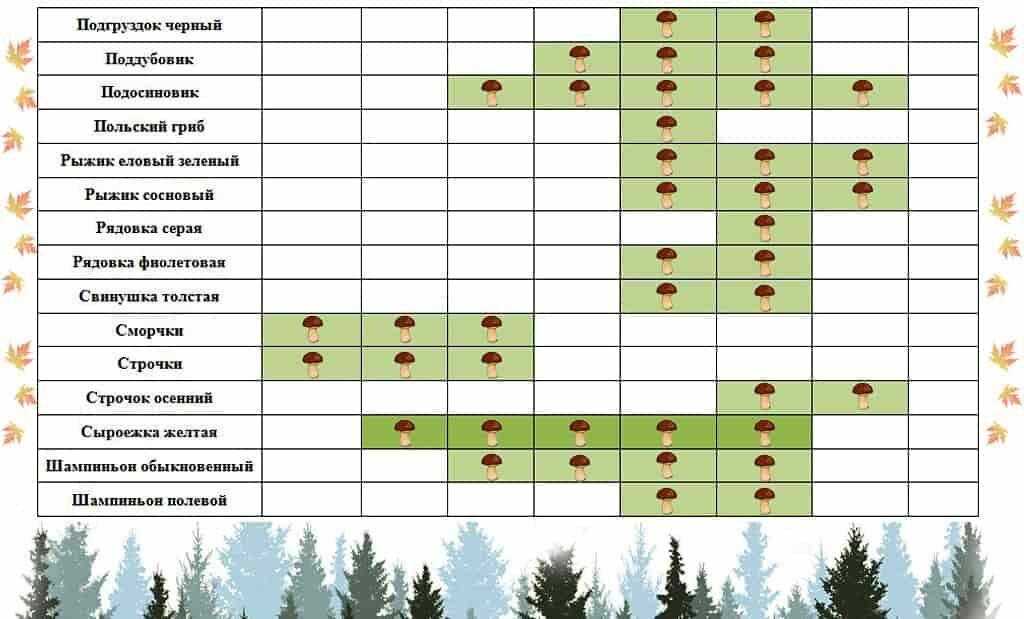Календарь роста грибов по месяцам