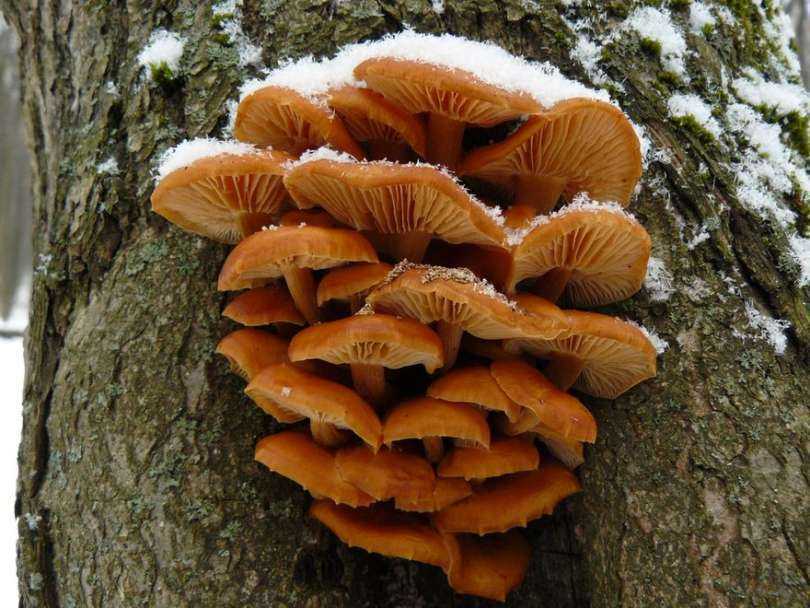 Эти холодолюбивые опята являются одними из самых красивых благодаря своей эффектной желто-оранжевой шляпке. Растут на деревнях и пнях даже под снегом в период с поздней осени до ранней весны.