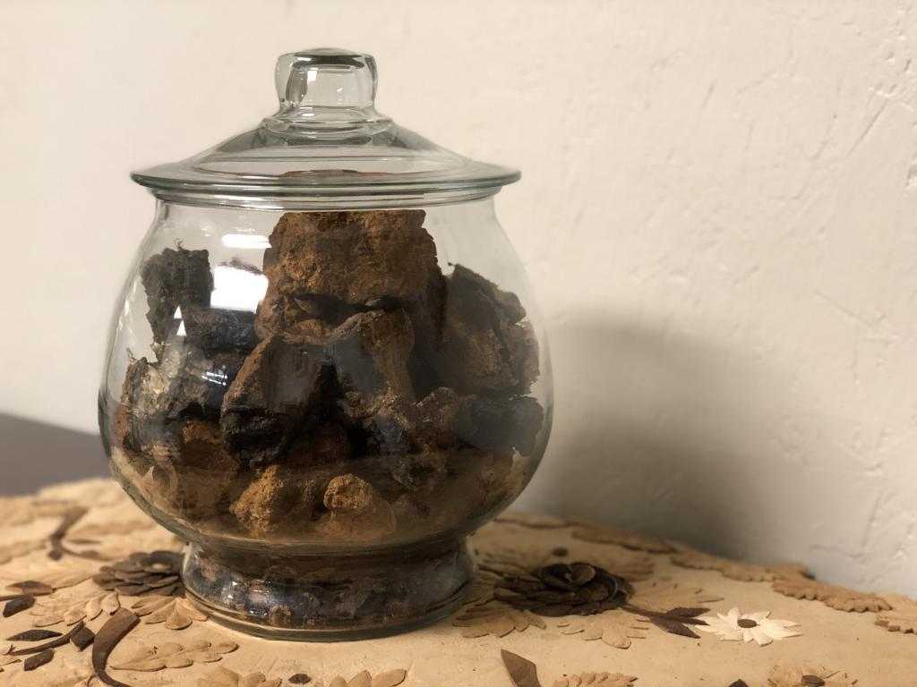 Хранить чагу следует в стеклянной банке, плотно закрытой, либо в бумажных пакетах, либо в тканевом мешочке.