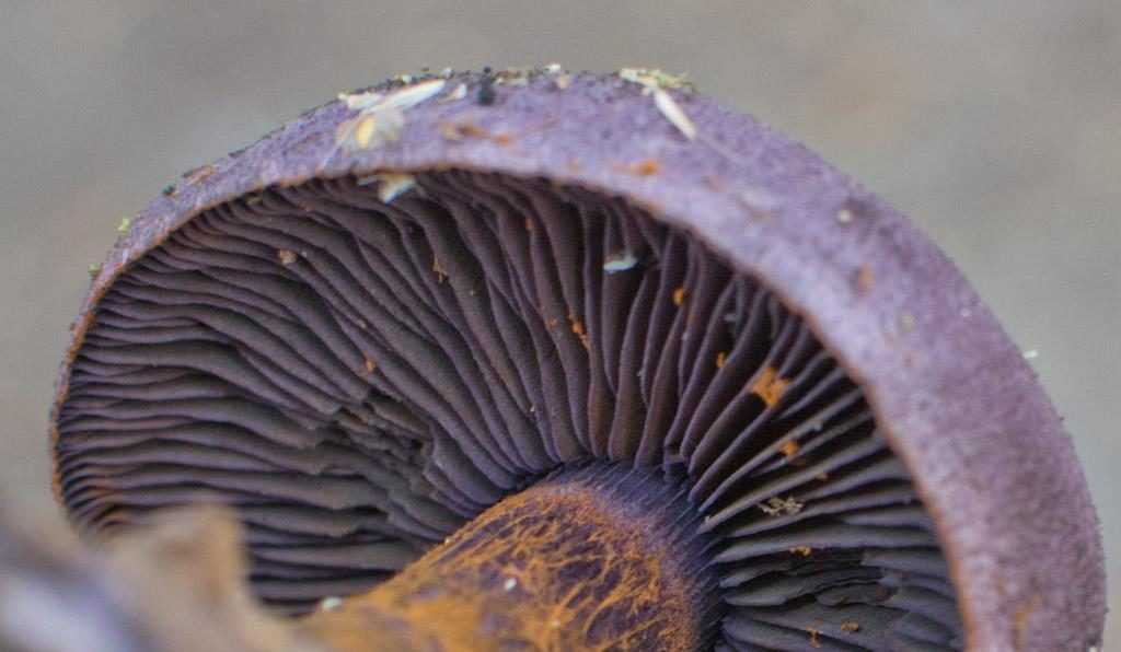 Паутинник Мэра (Cortinarius mairei). Его отличают белые пластинки гименофора.